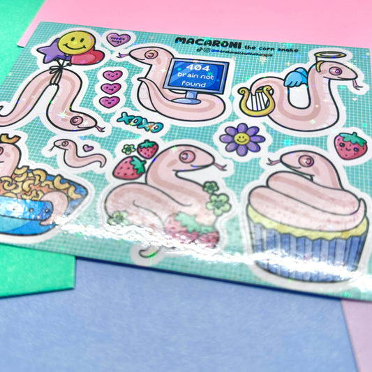 Macaroni the Corn Snake Holo Sparkle Sticker Sheet