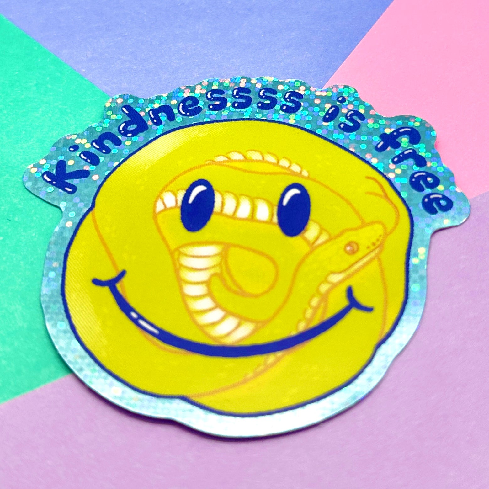 Be the reason someone sssmiles today! These stickers are 3" (7.6 cm) wide and made of durable glossy glitter vinyl that's waterproof and UV proof. Brought to you by Max, an anonymous benefactor of the arts :)