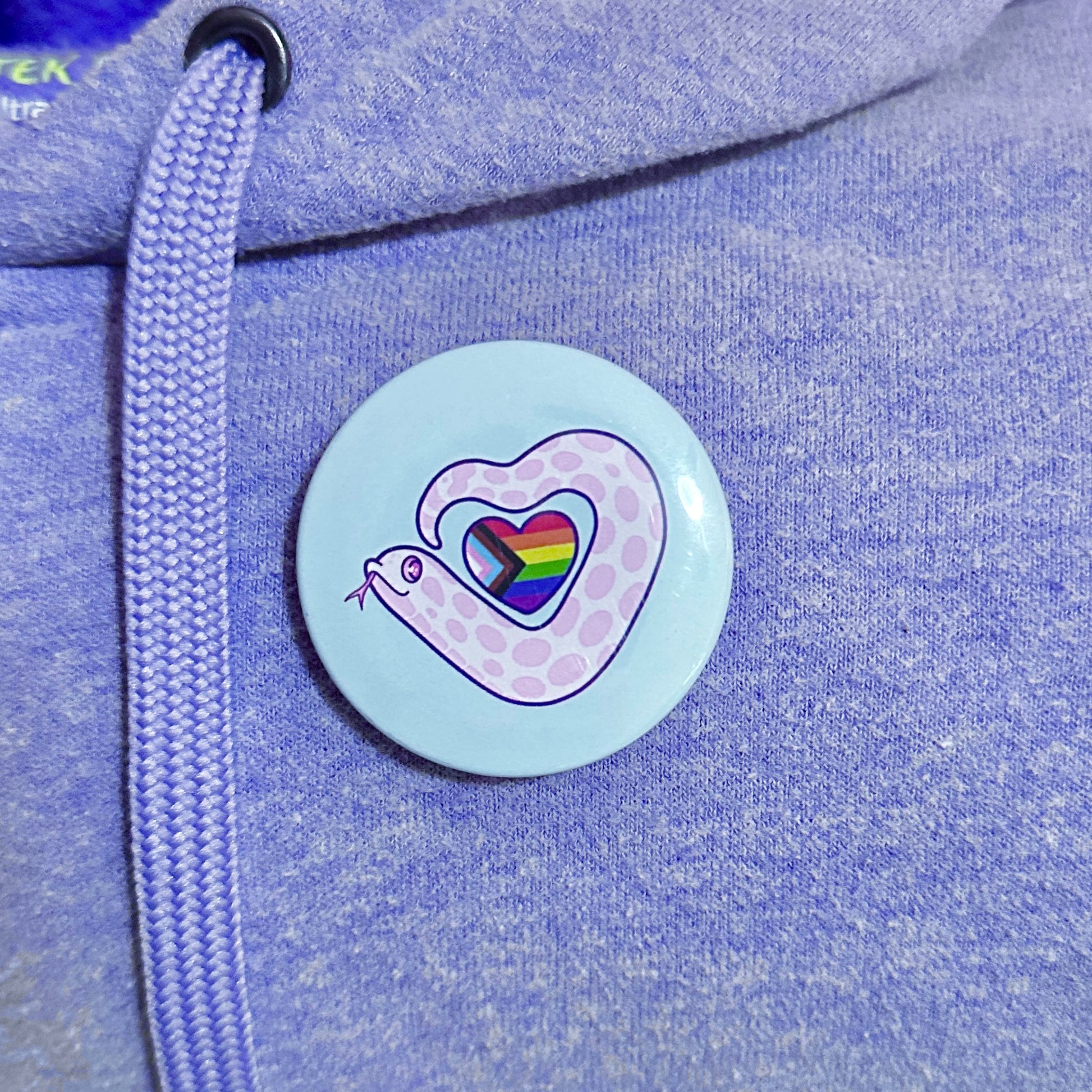 Show your pride with this fun hognose snake pin button! These pins are 1.75” with a metal pin closure and a plastic backing.