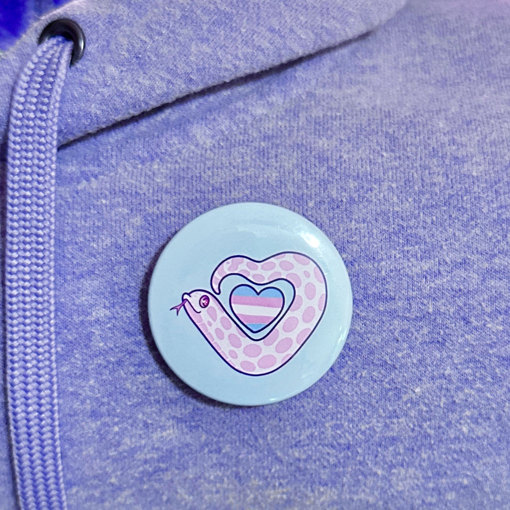 Show your pride with this fun hognose snake pin button! These pins are 1.75” with a metal pin closure and a plastic backing.