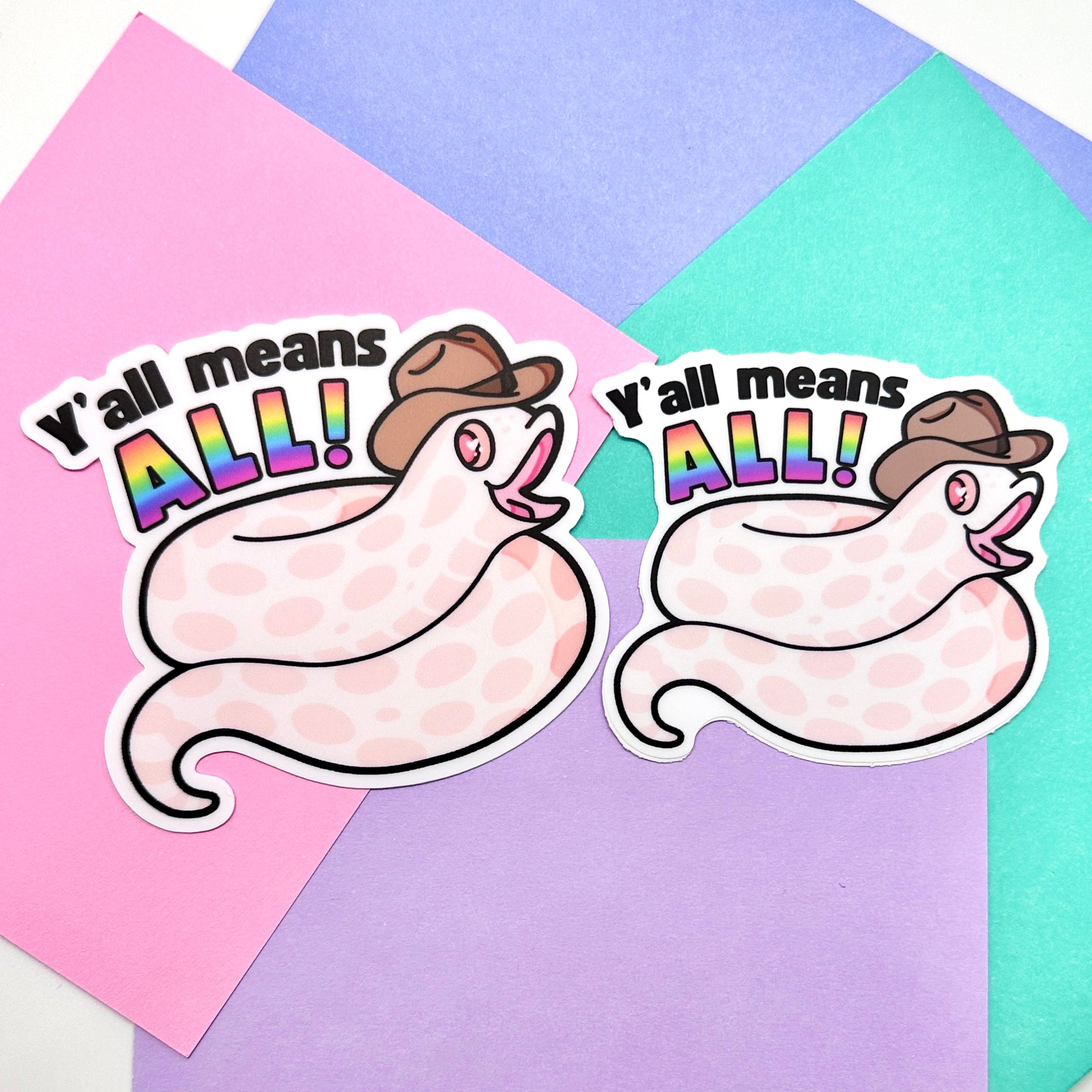 We support queer rights round these parts! These stickers are 3" (7.6 cm) or 3.5" (8.9 cm) wide (choose size options below)and made of durable vinyl that's waterproof and UV proof. Stickers are perfect for decorating your laptop, sketchbook, water bottle, tablet, phone case, car bumper, and anything else you want – the sky's the limit!